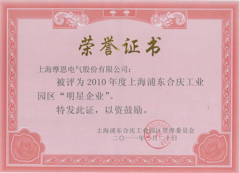 上海摩恩電氣股份有限公司多年被評為上海浦東新區明星企業