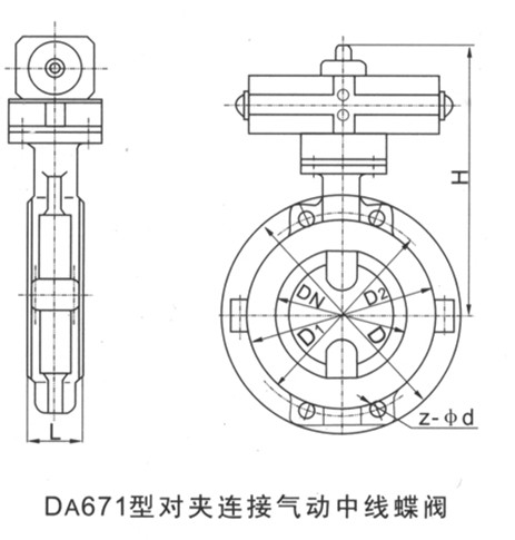 | 氣動襯氟蝶閥 主要外形和連接尺寸 |
