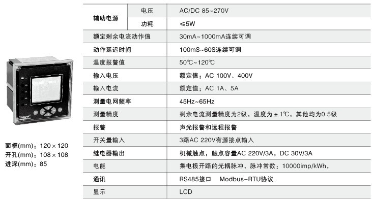 ● ARCM200L-J1、ARCM200L-J4具有事件存儲功能,報警器能夠記錄報警發生的時間、類型、參數,根據報警記錄可以分析現場的用電情況,為消除故障提供依據;
