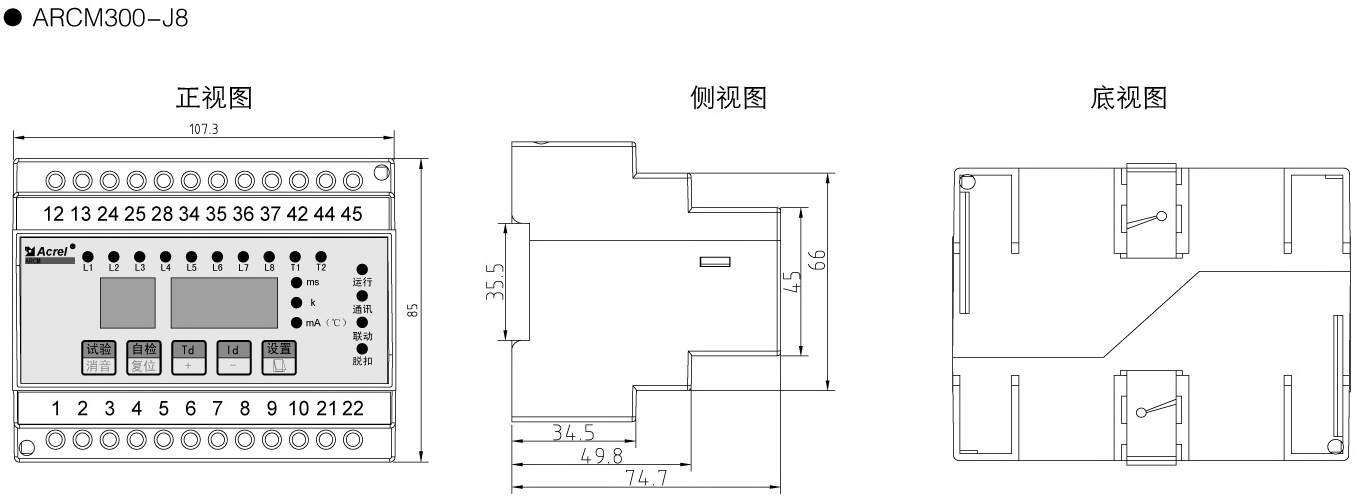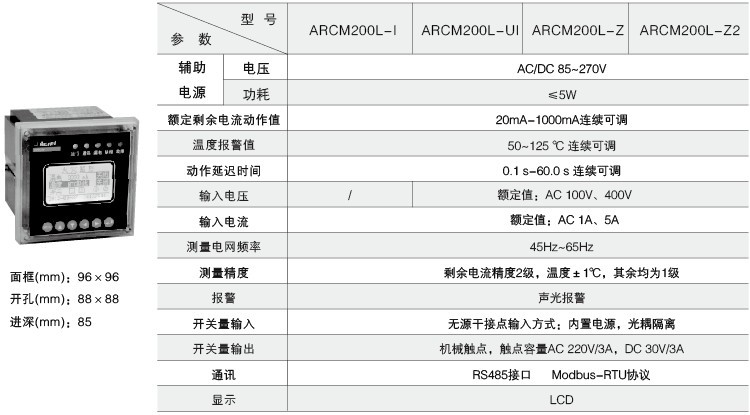 ARCM200L-Z: 三相電壓、電流、功率、頻率、四象限電能監測,過壓、缺相、過流保護