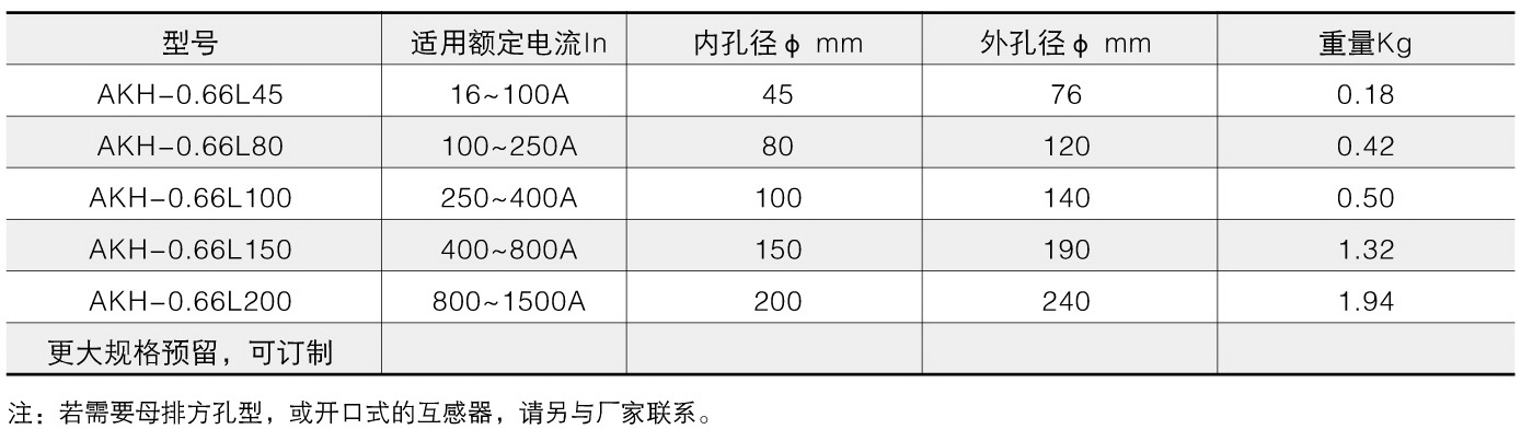 5.1 AKH-0.66L系列模擬型剩余電流互感器