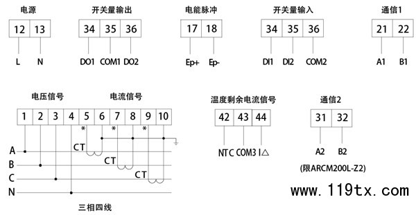 ARCM200L-Z2: 三相電壓、電流、功率、頻率、四象限電能監測,過壓、缺相、過流保護