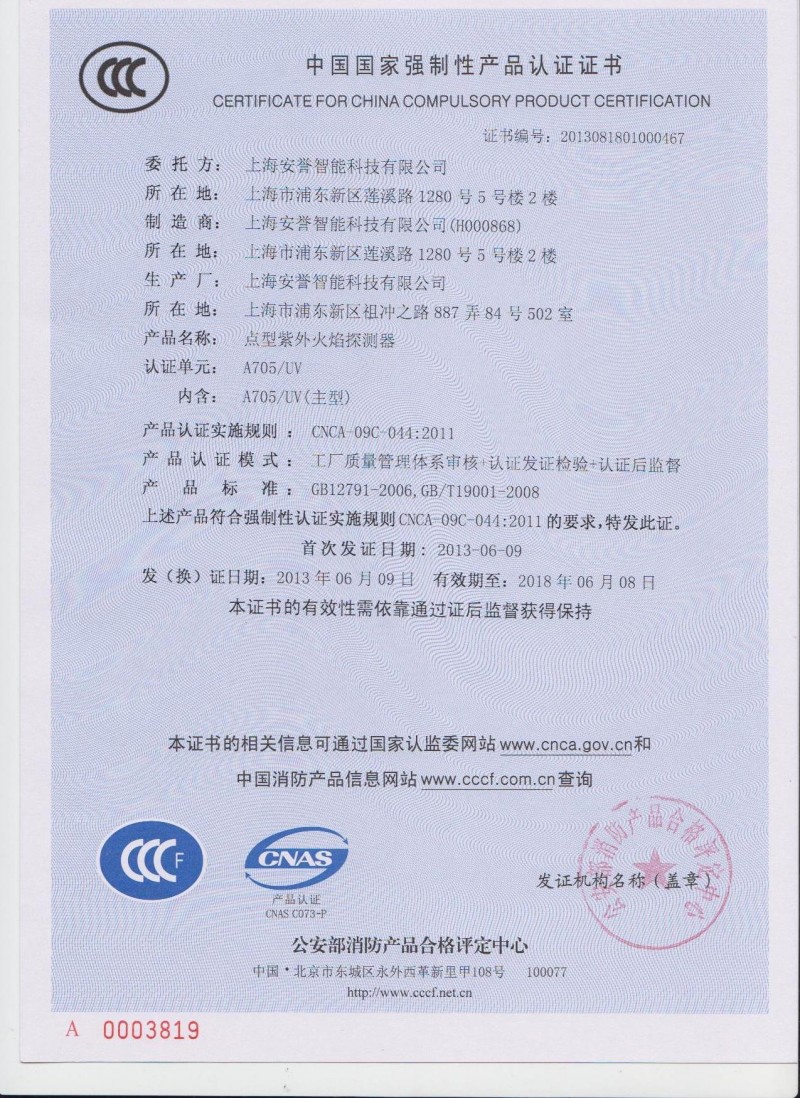 榮譽(yù)資質(zhì) A705UV--CCCF認(rèn)證
