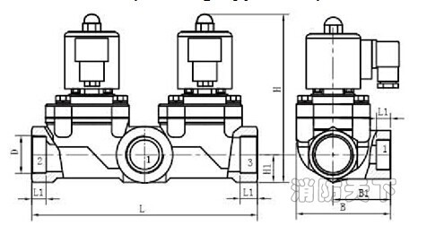 一進二出:(TM2/31) 當電磁閥線圈通電時,出介質端(2)第一路打開,第二路(3)關閉;當電磁閥線圈斷電時,出介質端第一路(2)關閉,第二路(3)打開;