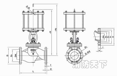 氣動截止閥氣動控制裝置的氣缸依作用方式可分單作用和雙作用兩種。單作用帶復位圓柱彈簧,具有失氣自動復位功能。即失氣時氣缸活塞(或膜片)在彈簧作用下,驅動氣缸推桿回復到氣缸初始位置(行程的原始位置)。雙作用氣缸無復位彈簧,推桿進退須依靠變換氣缸氣源的進出口位置。氣源從活塞上腔進時,推桿向下運動。氣源從活塞下腔進時,推桿向上運動。