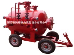 四、主要用途 該系列產品廣泛用于油庫、石油、化工、天然氣、電廠、紡織棉麻、碼頭、加油站、倉儲、高層建筑、燃油鍋爐等場所。泡沫滅火裝置是專為汽車庫、燃油鍋爐房等重要場所研制的一種新型、高效的消防產品。系統的關鍵部件自調型泡沫比例混合器是泡沫滅火設備的一次技術革新。它能在較大流量范圍內始終保持一定的混合比,再加上水成膜泡沫滅火劑其防護膜的滅火作用,適用于非吸氣型泡沫噴射裝置,使系統具有如下顯著特點: (1)泡沫滅火劑有成膜性和膜自愈性。抗復燃能力強; (2)泡沫液可貯存20年不變質。而一般泡沫液只能貯存2年; (3)滅火效力高。是一般泡沫滅火劑2~3倍; (4)適用于非吸氣型泡沫噴射裝置; (5)適用的泡沫混合液流量范圍大,混合比準確,適用于3%型和6%型泡沫液; (6)壓力損失小; (7)動作靈活。屬機械傳動; (8)耐蝕。部件由不銹鋼和銅合金制造; (9)泡沫液儲罐內置膠囊,使水和泡沫液隔離,可連續多次使用; (10)可與自動噴水滅火系統聯用,并可實現自動; (11)借助水源壓力來實現泡沫液供給,不需另設泡沫動力源; (12)適于自動噴水滅火系統的改造僅需增加泡沫比例混合器和泡沫液儲罐。(13)可以移動操作,靈活方便。