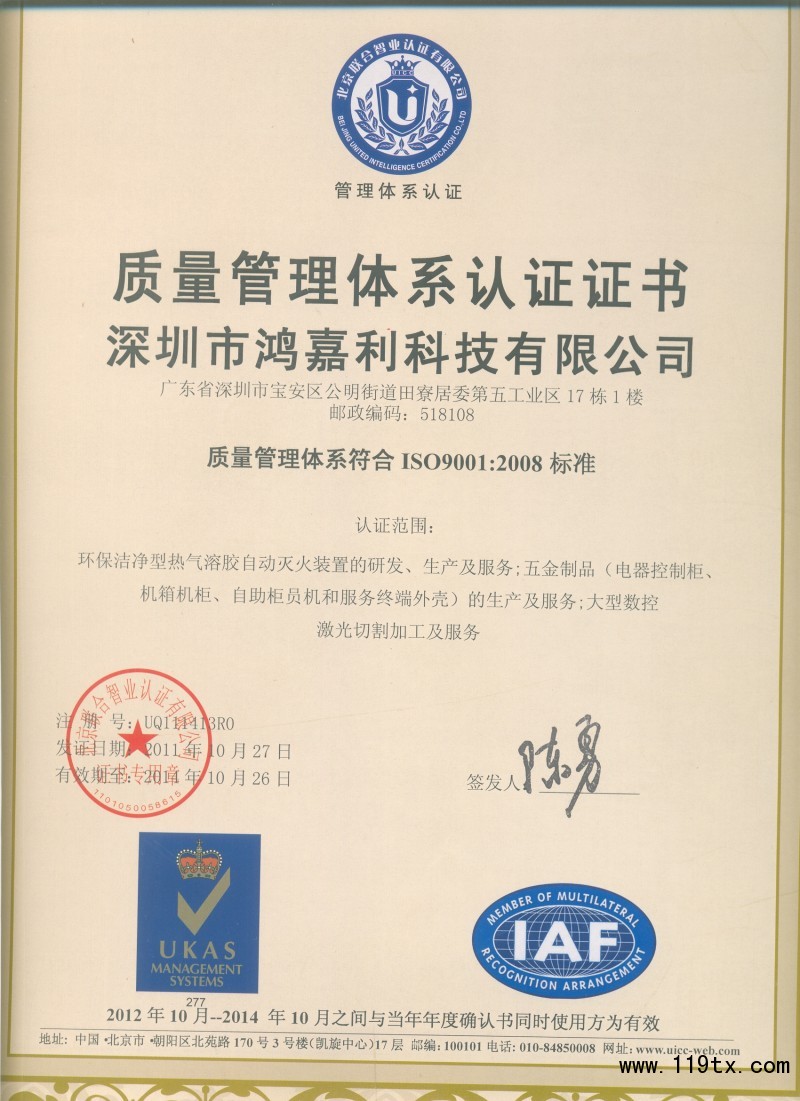 質量管理體系認證證書