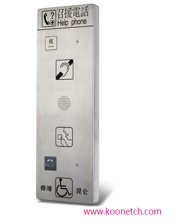 | 召援電話(KNZD-16) 本電話機(jī)可與大部分模擬或數(shù)字電話程控交換機(jī)兼容。主要垂直安裝于電梯轎廂內(nèi),供殘疾人或行動(dòng)不便的人使用。