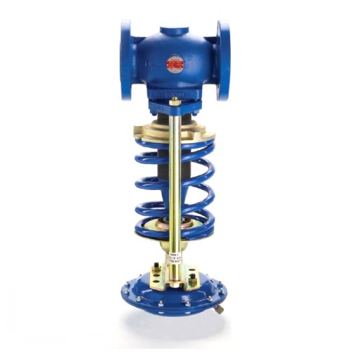斯派莎克蒸汽減壓閥工作原理:啟動前導閥彈簧處于自由狀態時,主閥和導閥處于關閉狀態。導閥有彈簧力作用打開,蒸汽經由導閥進入主隔膜室,一部分蒸汽則經由控制孔流出,當導閥流入的蒸汽大于由控制孔流出的蒸汽,主隔膜閥中的控制壓力增大,打開主閥。隨著蒸汽流過主閥,下游壓力的增量經由感應管反饋,作用在導閥隔膜下,平衡隔膜上部的彈簧壓力,使導閥組建關閉節流,維持主隔膜中的壓力,控制主閥開度輸送適量的蒸汽。調節導閥隔膜上的彈簧即可改變下游壓力。