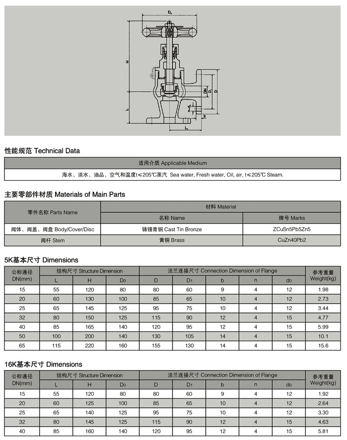 JIS F7302 5K/F7304 16K船用青銅法蘭直角截止閥