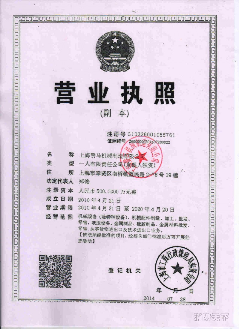 發證機構:   上海市工商行政管理局奉賢分局 發證時間 :   2010-04-21