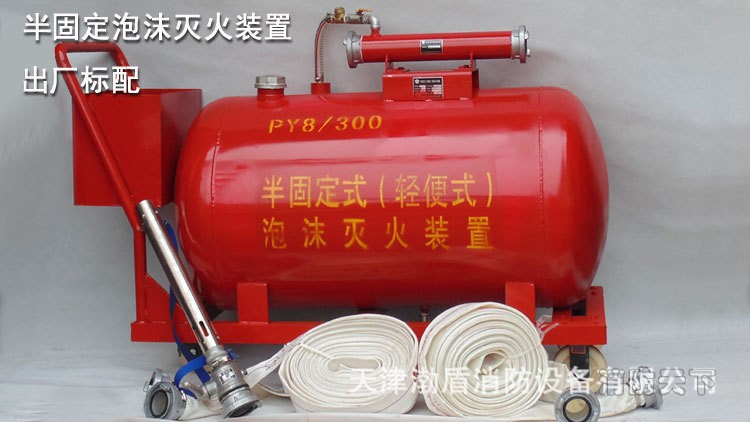 移動式比例混合裝置可由消防管網或城市供水管網、消防車、手臺泵等提供壓力水,當壓力水經過混合器時,水跟泡沫液按一定比例混合,經泡沫槍、泡沫產生器噴射泡沫撲滅火災。移動式泡沫罐適用于固體物資倉庫、易燃液體倉庫、鍋爐房、加油站、地下建筑工程、車庫、船艙等消防場所。