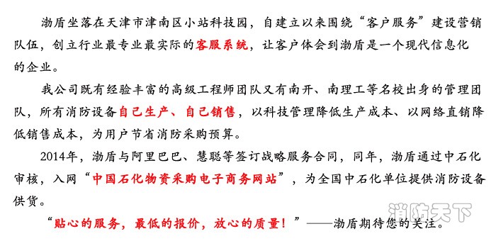 百度“天津渤盾消防設(shè)備有限公司”或者直接訪問www.tjbd119.com或www.tjbd119.cn,查看渤盾在線客服聯(lián)系方式,在線同客服溝通,即可獲取泡沫滅火設(shè)備最低報(bào)價(jià)。