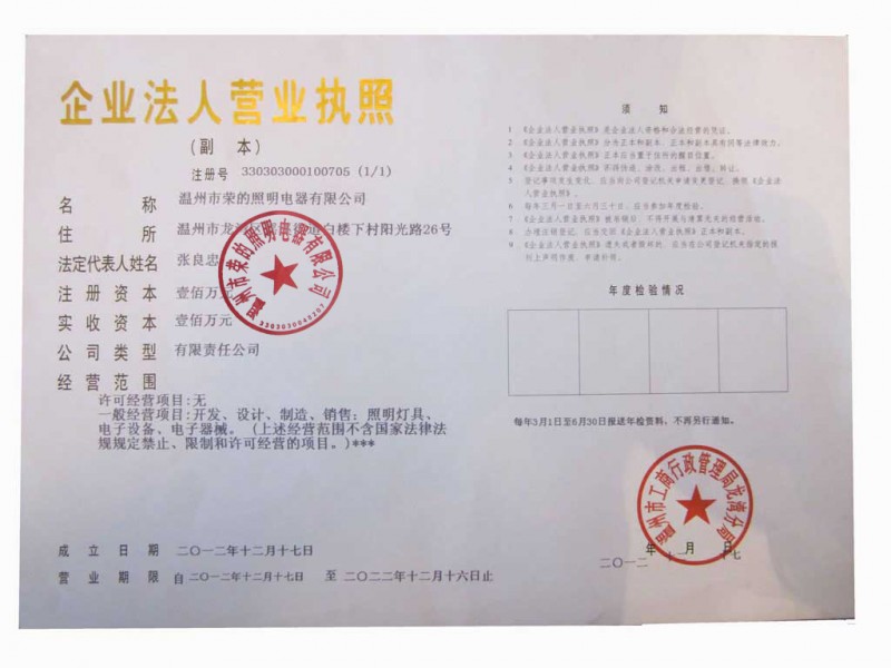 注冊單位:溫州市榮的照明電器有限公司 廠址:溫州市機場大道白樓下陽光路26號 主營介紹:專業開發設計、生產、銷售各類工程照明設備,如手提探照燈、強光防爆電筒、防爆頭燈、方位燈、高頂燈、移動照明車、車載探照燈、防眩泛光燈、通路燈、防震投光燈等各類工業照明、防爆燈具,可為有專業銷售渠道的單位及個人提供生產制造服務。