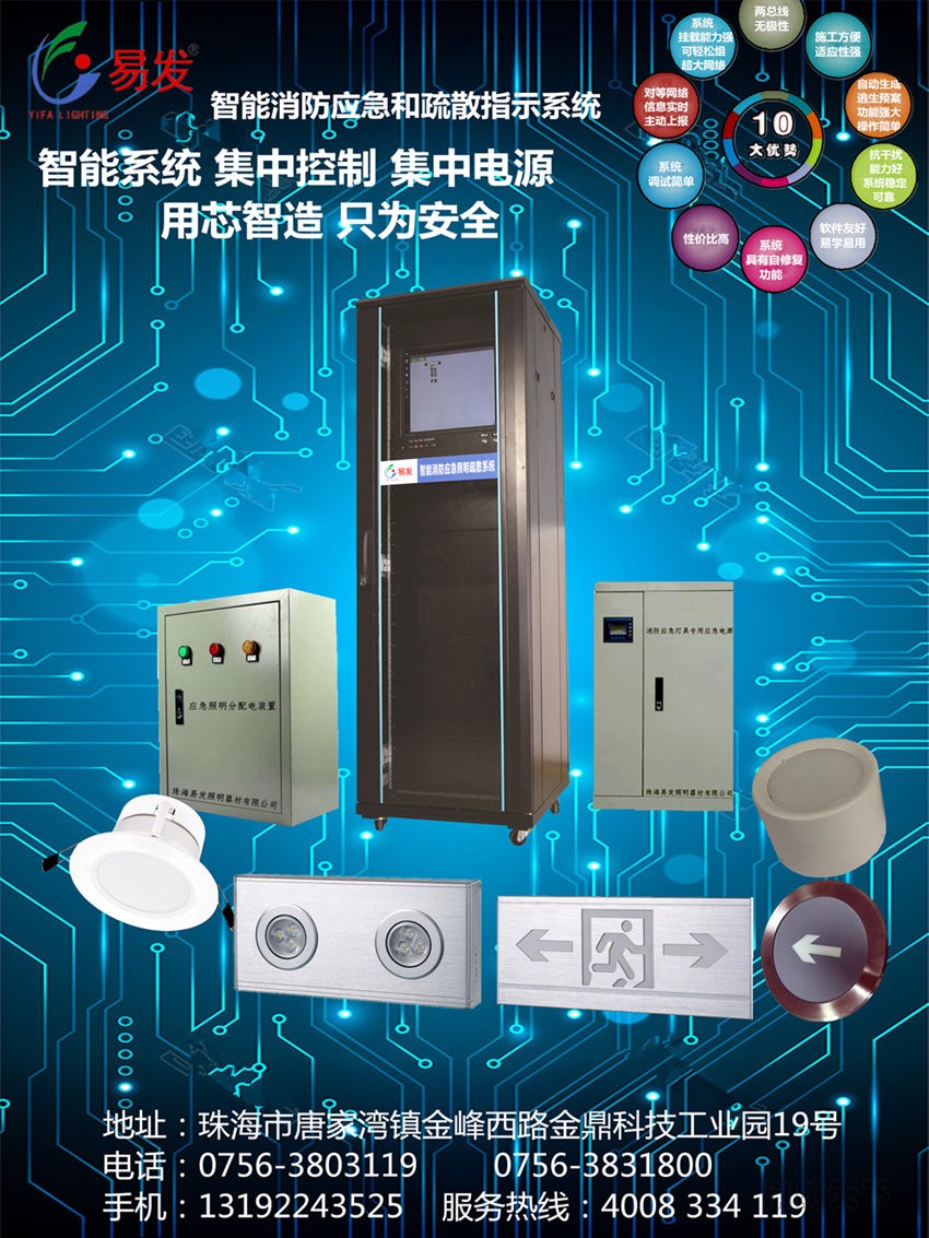故智能型消防應急照明和疏散指示系統的普及勢在必然。小編為大家強烈推薦易發集中電源集中控制型(智能)消防應急照明和疏散指示系統,該系統滿足GB 51309-2018《消防應急照明和疏散指示系統技術標準》等國家標準規范要求,同時還具有以下的優勢特點: