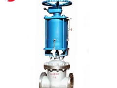 氣動帶手動閘閥具有氣動執行機構和手動及其保護機構的低支架閘閥。氣動閘閥由于采用雙層氣缸結構,與單氣缸式氣動閘閥相比,提升力增大了一倍。閥門具備緩沖機構,能有效地減速輕了關閉閥門時,活塞下行沖擊而造成的閥板車密封面和閥體密封面的磨損,也能避免閘板卡死的現象。