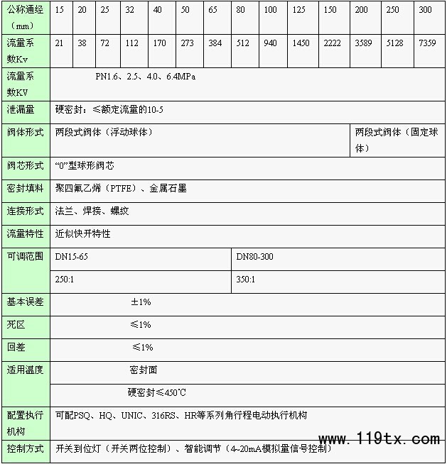 五:Q941H/Y電動硬密封球閥技術參數