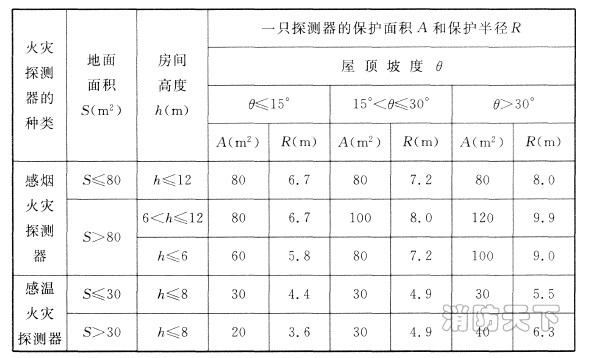 表6.2.2 感煙火災(zāi)探測器和Al 、A2 ,B 型感溫火災(zāi)探測器的保護(hù)面積和保護(hù)半徑