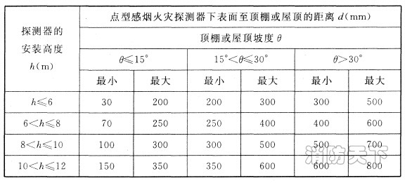 6.2.11 點(diǎn)型探測器宜水平安裝, 當(dāng)傾斜安裝時(shí),傾斜角不應(yīng)大于45。 。
