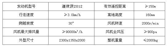 消防人員以遙控形式在安全位置對消防排煙機器人的行走,排煙,噴霧等各種功能進行遙控操作。消防排煙機器人本體采用履帶式底盤為行走機構,具有行走跨躍障礙、爬坡、原地轉向等優越的機動性和越野性能。