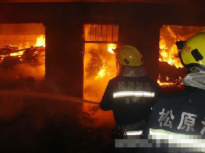 3點15分,前郭消防隊增援力量到達現場,由于道路原因,無法靠近起火廠房,采取同樣方法,由15頓水罐車沿小路鋪設近400米,戰斗組單干線出一支水槍,深入火場內部,直擊火點。隨同的21噸水罐車為前郭消防供水。