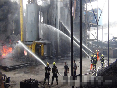 據現場工人介紹,起火的是廠內的煤氣站,主要生產煤氣,并生產部分煤焦油。事發時,生產用的水池旁一個水泵漏水,一名工人正在進行維修,由于生銹,于是用電焊槍進行作業。火星濺落在附近累積的煤焦油水垢上起火,并迅速將整個水池表面的煤焦油引燃,引發了大火。正在作業的工人立即用水和滅火器進行滅火,無奈火勢太大,收效甚微。