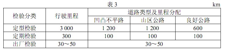 按GB 7956 第3.6 條規(guī)定的試驗(yàn)方法進(jìn)行,行駛里程、道路類(lèi)型及里程分配按表3 的規(guī)定,結(jié)果應(yīng)符合5.2.8 條的規(guī)定。