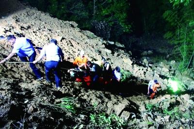 事故地點路面窄小,地勢險峻,大型的器械根本無法到達和派上用場,救援只能靠人力實施。夜間一片漆黑,周圍環(huán)境不明,消防官兵和派出所民警利用搶險救援車的照明燈照明,借助救生繩索,從距現(xiàn)場100米處的一處斜坡滑下,再實施救援。由于不久前該地區(qū)遭遇洪水,土質松散,不時還有滾石和泥土落下,大家強忍著困難一步一步將兩名傷者先后從溝底抬了上來。