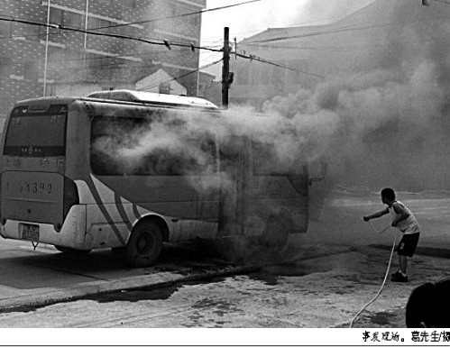 事發(fā)時(shí),這輛中巴車途經(jīng)永嘉縣橋下鎮(zhèn)韓埠村,當(dāng)時(shí)車內(nèi)共有12人,大家被突發(fā)情況嚇了一大跳。中巴車駕駛員陳師傅說,他看到車頭冒煙繼而起火,趕緊停車并打開車門,讓乘客先下車,自己最后一個(gè)下車。為了撲滅大火,他從附近居民家里用水管接來水,但無濟(jì)于事。