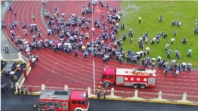 接警后,消防隊長在趕往學(xué)校的路上一直與報警人保持溝通。“打濕衣物,捂住口鼻,彎腰快速逃離火災(zāi)現(xiàn)場!記住!不要擁擠!逐個靠右逃離!”講授了基本的逃生知識。過了10多分鐘,消防趕到了自治州民族中學(xué),此時學(xué)校操場上站了800余名學(xué)生。