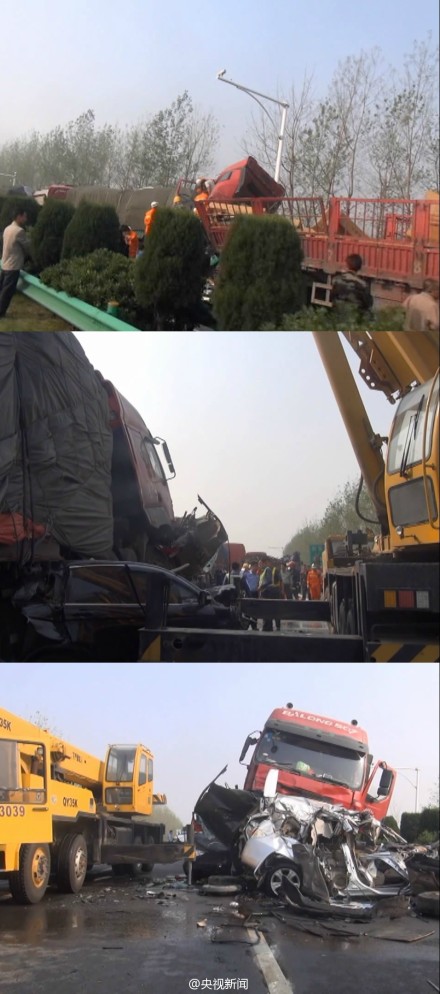 今天上午7點左右,因大霧,京臺高速安徽宿州段818—820公里處發生雙向多點連環車禍,事故現場共有5個車禍點、15輛車相撞,共造成5人死亡,11人受傷,并導致高速路上2公里路段的擁堵。