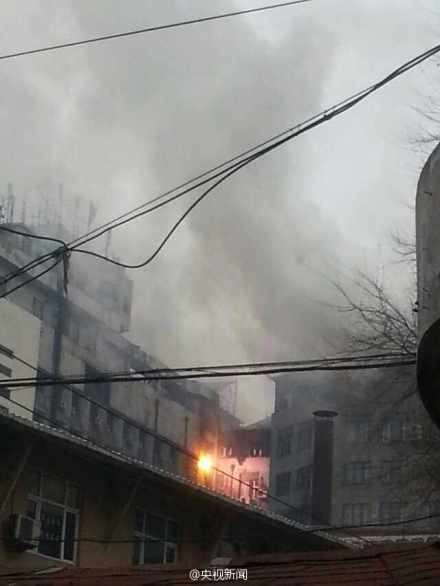 今早8:30,哈爾濱市火車站對面的五洲快捷賓館樓頂起火。