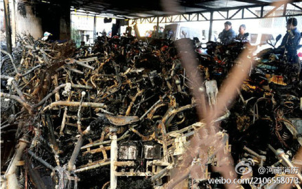 棚內約150輛電動車被燒成“鐵架子”,大火至少造成居民15萬元的損失。