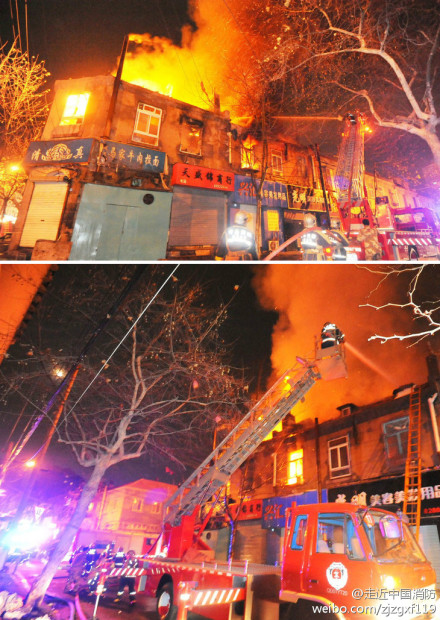 12月16日傍晚,山東青島海泊路63號院內(nèi)二樓突然冒起五米多高的熊熊大火。