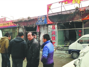 起火的是一棟由彩鋼板搭建的倉儲式簡易樓。據商戶稱,簡易樓一層是銷售瓷磚和加工鐵藝的門市,二層住人。據目擊者稱,大火是從簡易樓北側的“雙興鐵藝”著起來的,其損毀情況最為嚴重。大火燒起來后,鐵藝鋪的左鄰右舍也受到了牽連。