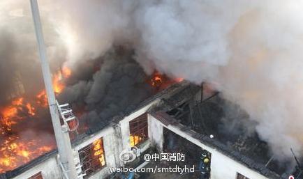 由于房頂采用木質結構,且內部堆積了大量成品化纖紡織品,風助火勢迅速蔓延,成燎原趨勢。
