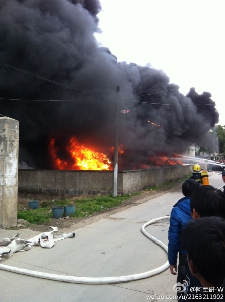 網友稱:杭州灣新區奔多廠大火。從圖上可以看到,火勢迅猛,濃煙滾滾。