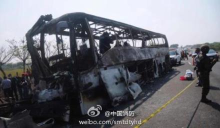 墨西哥韋拉克魯斯州警方稱,當(dāng)?shù)貢r(shí)間4月13日凌晨2時(shí)許,在韋拉克魯斯州的高速公路上,一輛駛往首都墨西哥城的長途公共汽車與一輛停在路邊的破舊的大貨車后部猛烈相撞,導(dǎo)致長途公共汽車起火并劇烈燃燒。