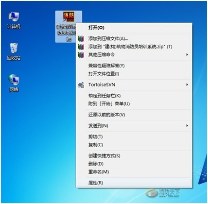 右鍵單擊“消防“圖標,左鍵單擊”屬性“。