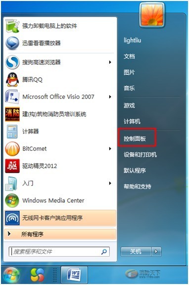 打開”開始”菜單,單擊“控制版面”選項。