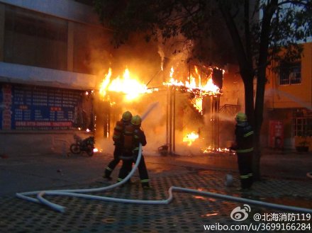 昨天,海城區四川路新浪潮KTV車棚著火,蔓延迅速。