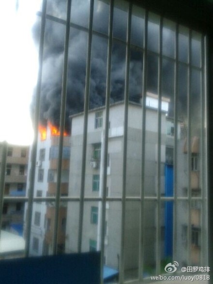 網友消息:今天早上7點多的時候,普寧后壇時空網吧對面發生火災,怡和公寓頂上天空烏煙籠罩。