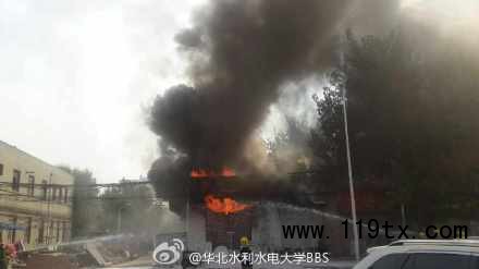 今天中午2點左右,華北水利水電大學(xué)花園校區(qū)七號宿舍樓旁供電室著火。