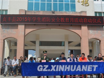 為深入推進消防宣傳進校園工作,切實提高學校全體師生的消防安全意識和自我互救能力,預防、減少各類校園火災事故的發生。3月30日,貴州省黔西南州貞豐縣消防大隊聯合貞豐縣教育局在貞豐縣第二中學開展2015年學生消防安全教育月活動,全校共千余名師生參加此次活動。活動主要由防火知識講解、組織模擬火場逃生自救等內容組成。