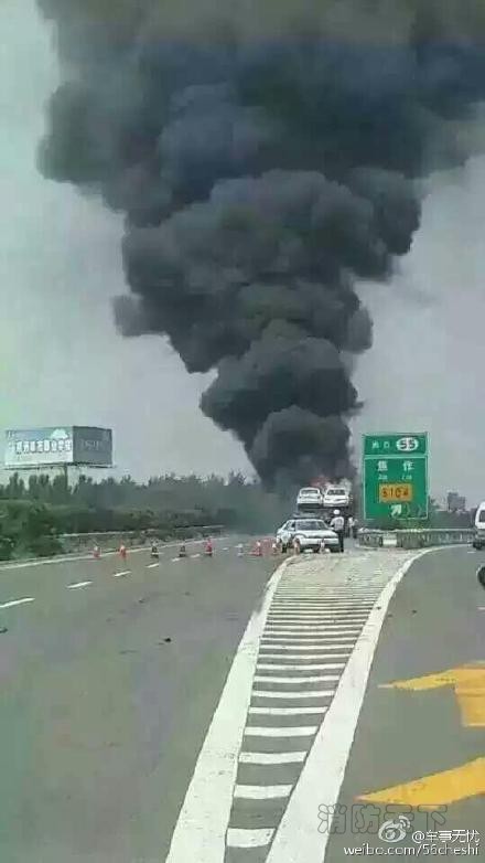 網友消息:今天中午,鄭焦高速焦作出口一托運帝豪轎車的板車突發火災。
