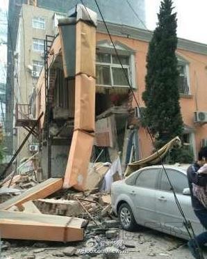 現(xiàn)場(chǎng)墻體倒塌,玻璃全被炸碎。