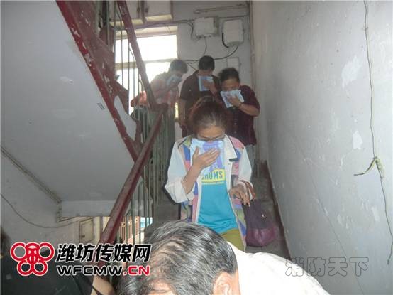 社區工作人員向居民介紹了消防服裝的功能,講解了消防滅火器的使用方法,并帶領大家進行模擬消防演習。假設樓上起火,產生大量煙氣,居民在社區工作人員的帶領和指揮下,用濕毛巾捂住口鼻、貓著腰,手牽手、相互幫助,順著墻壁,緊張有序地疏散離開。