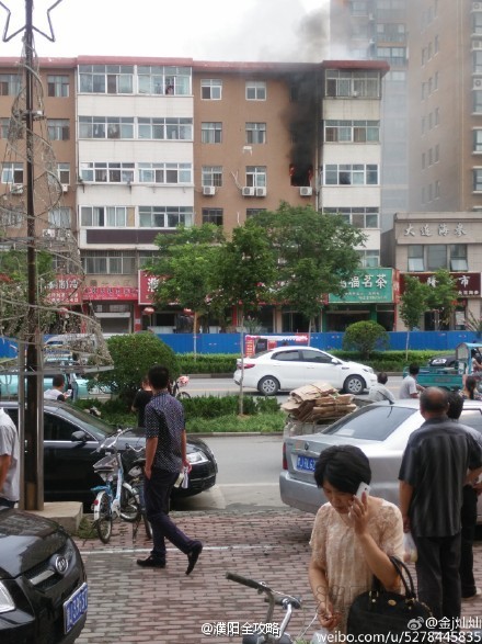 網友消息:今天上午9點半左右,濮陽黃河路大慶路東,悅海蘭亭西有一單元樓突發火災。