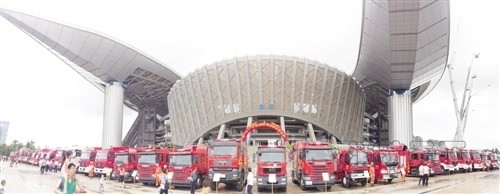 現場云集了78米云梯消防車、55米多基平臺舉高車、21噸大功率水罐泡沫車、18米墻壁破拆車、渦噴消防車、城市主戰消防車等38輛廣西目前技術性能最先進的消防車輛,其功能和特點成為市民關注的焦點。舉高類消防車旁圍滿了觀眾,尤其是那輛78米登高平臺消防車更是成為場上“明星”。據介紹,這輛78米登高平臺消防車是目前廣西最高的登高平臺消防車。此類消防車主要用于高層建筑、設施火災撲救及高空營救被救人員。