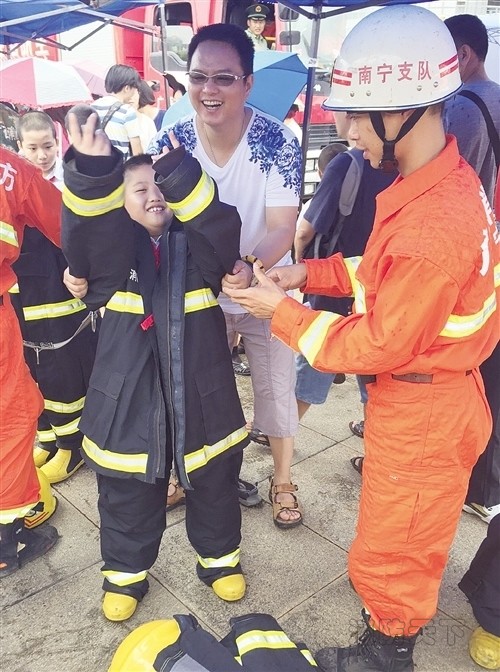 很多小朋友拉著家長通過消防展板了解防火常識,消防安全標志、消防常識20條、消防知識問答題目等消防安全知識。在現場體驗區,小朋友們在家長的幫助下,穿上了避火服,戴上了呼吸器,著實過了一把消防員的癮。有小朋友抱怨穿上避火服后“好熱啊”,一旁的家長告訴他“知道消防員不容易了吧”。市民張先生表示,這樣的活動很接地氣,以后應該多舉辦,多給市民學習的機會。